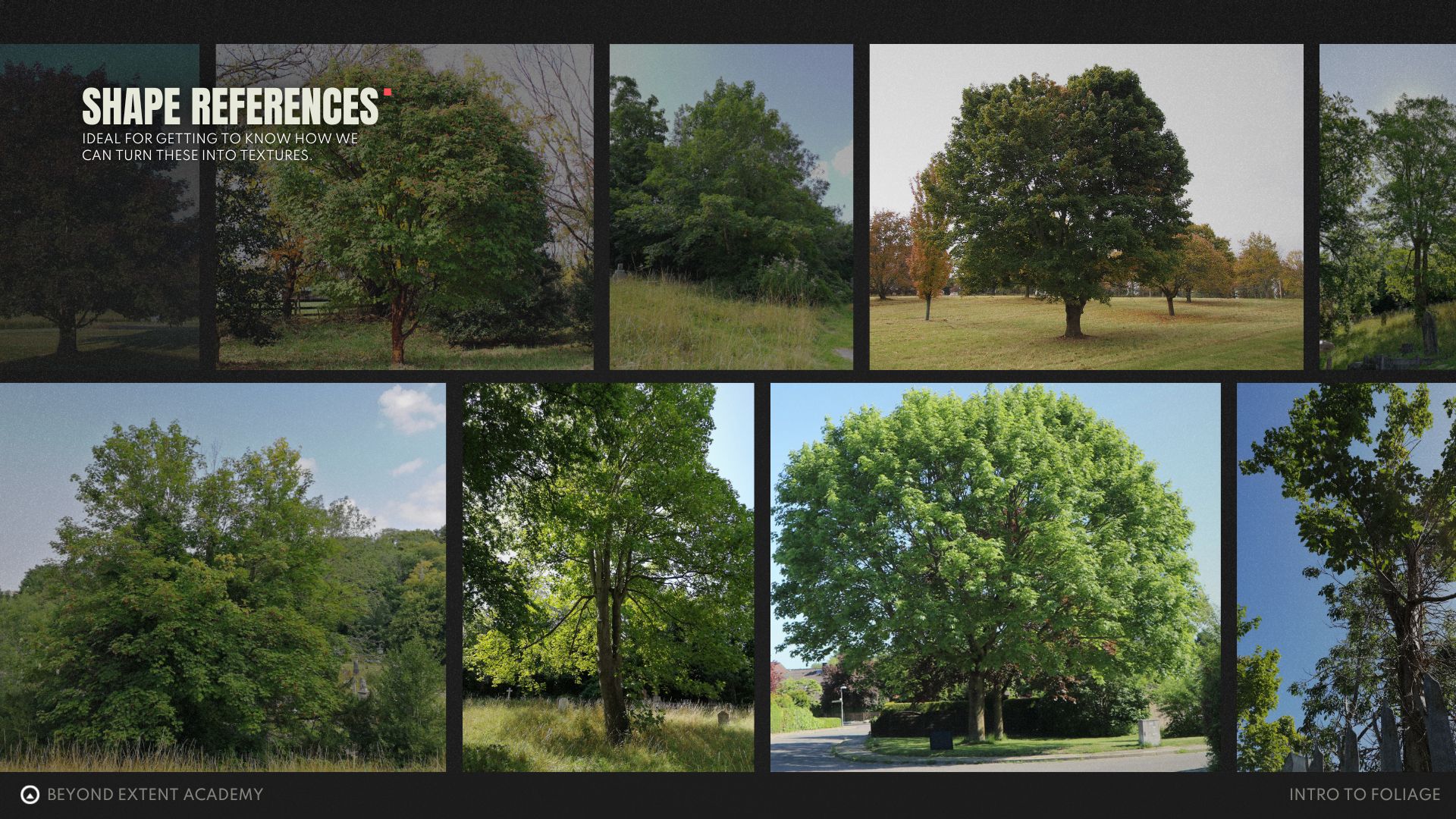 Shape References show the entire plant (in this case, a tree). We can perform a general shape reference search first to get a first impression of how such a tree looks like. Trees can look vastly different depending on where they are located. Â Let's not worry about locational differences for now, as we'll address those later on in the lesson.
