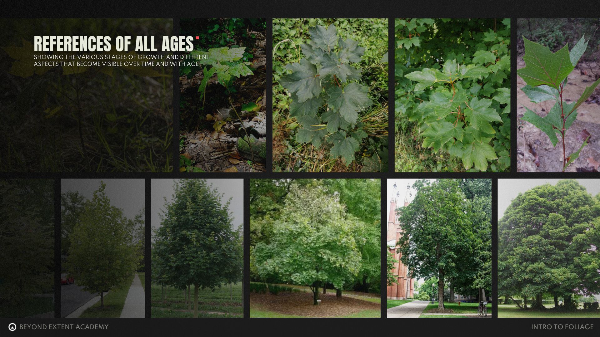 In games and movies, different levels of maturity are  needed to add variety to the environment. We do not want to give off the impression that there are only fully grown maple trees in this world. In a natural environment — or more precisely, a biome —  plants at every level of maturity can be found.